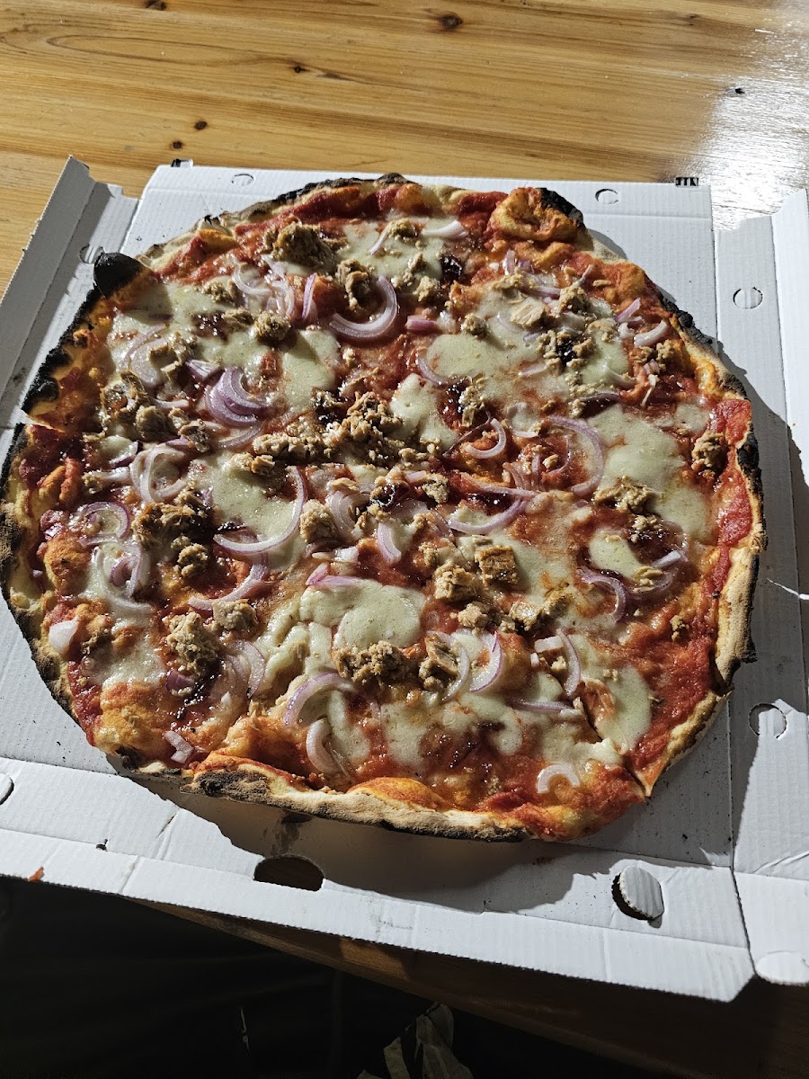 La posizione della pizzeria è molto tranquilla e rilassante. La pizza è molto gustosa, ho ordinato una tonno e cipolle che aveva la miscela perfetta di dolce e salato. Il personale è molto gentile e il pizzaiolo è una persona amichevole e animata, ed è chiaramente un esperto. Raccomando pienemente questo locale.